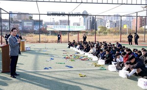 충북 청주 주성중학교는 지역 프로축구팀 충북청주FC(이하 청주FC) 마지막 홈 경기를 학생들과 관람했다고 12일 밝혔다.주성중 학생과 교직원, 학부모 등 150여 명은 지난 9일 청주종합경기장에서 열린 하나은행 K리그2 2025 38라운드 청주FC와 서울이랜드 경기를 관람하며 지역 팀을 응원했다.이번 관람은 학생들에게 지역사회 유대감을 길러주자는 취지로 마련됐다.앞서 청주FC는 주성중과 '스쿨어택' 프로그램을 운영한 바 있다.스쿨어택은 청주FC가 도내 학교와 협업해 진행하는 사회공헌 활동으로, 프로 선수들이 학교를 찾아 학생들에게