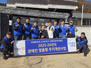 서청주로타리클럽은 18일 흥덕구 오송읍에서 고령 시각 장애인의 노후주택에서 주거개선 봉사활동을 했다. /박장미기자
