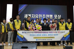 송기섭 충북 진천군수가 지난 22일 세계자유민주연맹(WLFD·World League for Freedom and Democracy)의 ‘자유장’을 받았다.송 군수는 지역사회에서 자유민주주의 가치 확산과 안보의식 고취를 위해 이바지한 공로를 국제적으로 인정받았다.송 군수는 민선 8기 출범 이후 ‘군민 중심의 소통 행정’을 강조하며, 다양한 계층과의 협력을 통해 사회적 갈등을 해소하고 공동체 가치를 실현해왔다.특히 국가 안보와 자유민주주의 교육 프로그램 활성화, 호국 보훈 사업 확대, 통일 대비 시민 의식 함양 등에 앞장서며 지역사회