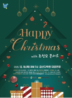 충남 금산다락원이 12월 18일 오후 7시 생명의 집 대공연장에서 연말 특별기획공연 해피 크리스마스 조성모 콘서트를 개최한다.이번 콘서트는 국민 발라드 가수 조성모의 감미로운 목소리와 따뜻한 감성을 통해 한 해의 끝자락의 금산군민에게 잊지 못할 감동을 선사할 예정이다. 무대 연출엔 국내 최고 수준의 조명·음향·특수효과 전문팀이 참여해 완성도를 높였다. 빛과 음악, 감동이 어우러지는 무대를 통해 관객은 마치 한 편의 드라마 같은 크리스마스의 낭만을 만날 수 있다.티켓예매는 금산다락원 홈페이지와 금산군 예매시스템을 통해 1인당 2매까지