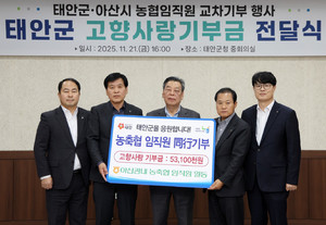 NH농협이 충남 태안군과 아산시 간 고향사랑기부금 상호기부에 나서 지역사회에 따뜻한 감동을 선사했다.태안군에 따르면, 농협 아산시지부는 지난 21일 태안군청 중회의실에서 '태안군·아산시 농협 임직원 고향사랑기부금 전달 행사'를 갖고 총 5310만 원의 고향사랑기부금을 태안군에 전달했다.이날 전달 행사에는 가세로 태안군수를 비롯해 농협 아산시지부 이규황 지부장과 아산시조합운영협의회 김명규 의장, 태안군지부 윤희철 지부장, 태안군조합운영협의회 조한민 의장 등 양 지자체 농협 관계자 17명이 참석해 자리를 빛냈다.이번 상호기부는 고향사랑