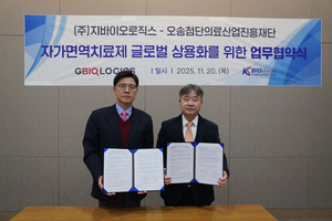 오송첨단의료산업진흥재단(KBIOHealth)이 지바이오로직스(대표 송동호)와 자가면역질환 치료제의 글로벌 상용화를 위한 협력체계를 구축했다.이들 기관은 판교 지바이오로직스 본사에서 ‘글로벌 시장을 향한 자가면역 혁신 치료제 개발을 위한 동행 업무협약(MOU)’을 체결했다고 23일 밝혔다.이번 협약은 자가면역치료제의 상용화 속도를 높이고 세계 시장 진출 기반을 마련하기 위한 것으로, 연구개발부터 사업화·글로벌 진출까지 전주기적 협력체계를 강화하는 데 뜻을 모았다.협약에 따라 양 기관은 △유전자 재조합 기반 자가면역치료제 공동 연구개발