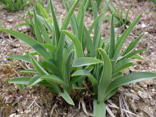 다 자라면 키가 1m까지 자라고 뿌리 부분에서 가늘고 긴 잎이 돋아나며 끝이 뾰족하고 2줄로 늘어서고 길이가 약 80㎝, 너비가 1.2∼2.5㎝로 조금 두껍고 흰빛을 띤 녹색이다.꽃은 7∼8월에 주황색으로 피고 열매는 10월에 익고 뿌리는 맥문동처럼 괴경이 달리는데 사방으로 퍼져나간다.