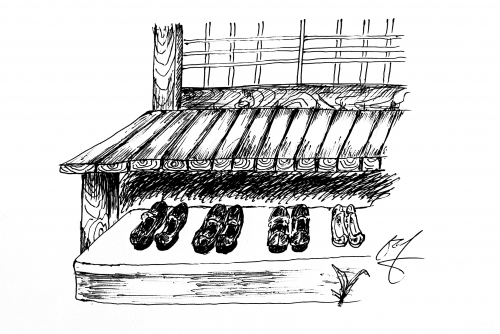 상주옥에서 제일 큰 방인 매화실 앞 들마루 밑에는 십여 켤레의 구두가 자로 줄을 맞춘 것처럼 반듯하게 정리되어 있다. 그 한쪽에는 옥색고무신과 꽃무늬고무신 두 켤레가 얌전하게 자리 잡고 있다.