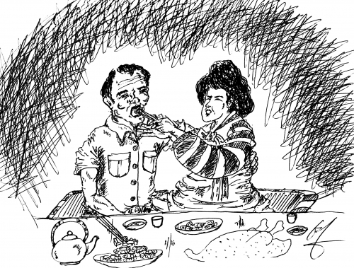 모서댁이 북어포를 고추장에 찍어서 김치수의 입에 넣어주며 혼잣말로 중얼거린다.