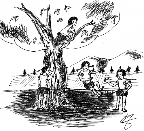 제법 걸음마 실력이 늘어서 아장아장 걷는 나이가 되면 둥구나무 밑에까지 걸어가서 너럭바위에 올라가 놀기 시작한다. 나이가 예닐곱 살이 되면 아이들은 어른들이 시키지 않아도 저 혼자 둥구나무에 올라가서 세상이 얼마나 넓은지 스스로 터득을 한다.