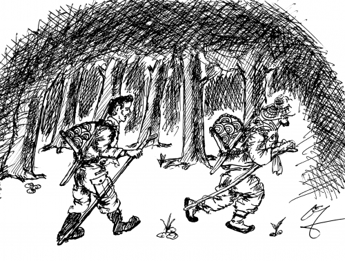 김춘섭은 박태수가 건네주는 담배를 받아서 입에 물고 하늘을 바라본다. 장작을 지게에 얹기 전만해도 하늘에 별이 총총하게 박혀있었다. 어느 틈에 뿌연 구름이 하늘을 뒤덮고 있고 몇 개의 별들만 희미하게 보일 뿐이었다.