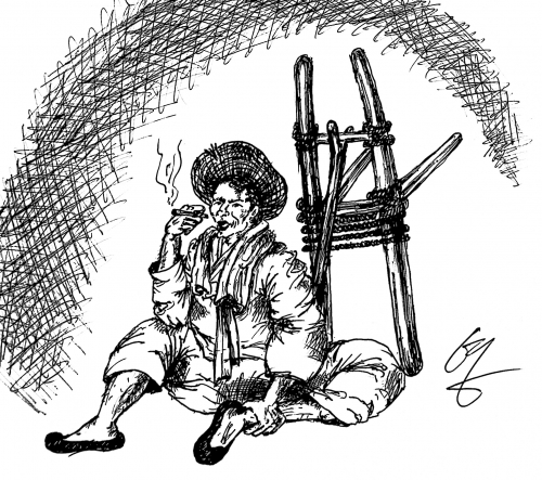김춘섭은 신문지 조각에 익숙하게 쌈지 안에 들어있던 풍년초를 말아서 입에 물었다. 박태수가 파랑새에 불을 붙이고 난 성냥불을 건네준다. 김춘섭은 종이 타는 냄새를 느끼며 담배를 싼 신문지에 붙은 불을 흔들어 끈다.