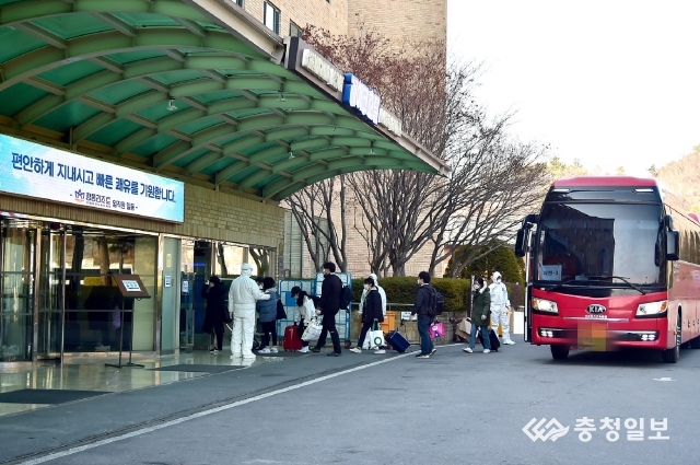 제천시에 따르면 이날 오후 코로나19 경증 환자들이 탑승한 대구발 버스가 청풍면 국민연금공단 청풍리조트에 속속 도착했다.
