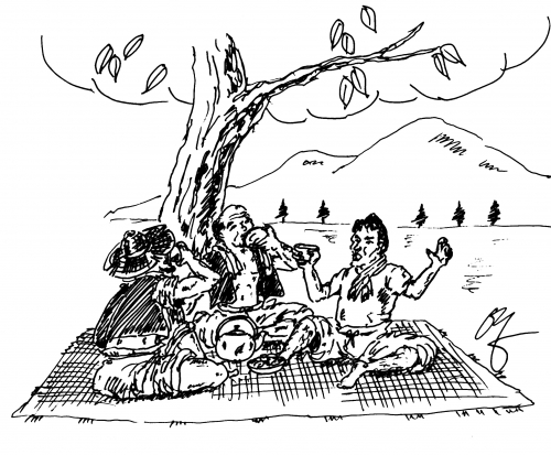 순배영감의 밭고랑처럼 주름이 진 얼굴은 빨갛게 물들어 있다. 짠 소금이라도 먹는 것처럼 입술을 냠냠 거리며 표주박으로 막걸리를 서너 수저는 될 정도로 살짝 떴다. 두어 모금 꿀꺽꿀꺽 마시 후에 손바닥으로 입술을 쓰윽 닫고 넉넉한 표정으로 모내기판을 바라본다.