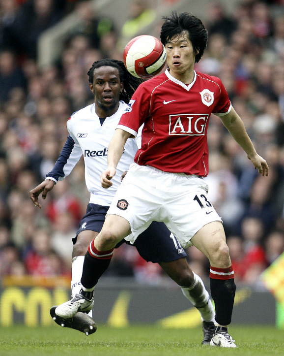 | ▲박지성이 17일 밤(이하 한국시간) 영국 맨체스터 올드 트래퍼드 스타디움에서 열린 2006-2007 프리미어리그 30라운드 볼턴 원더러스와 홈 경기에서 리카르도 가드너와 볼을 다투고 있다. |