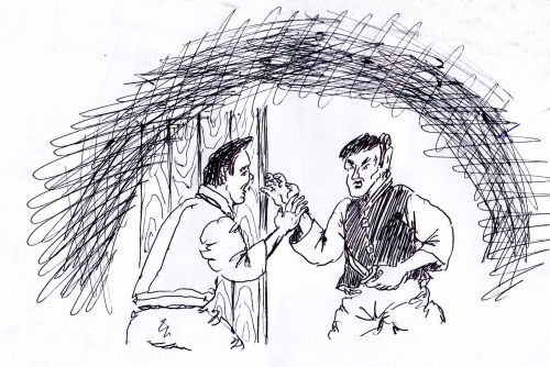 가볍게 코를 골며 자는 줄 알았던 여자가 커튼을 들추고 모습을 드러냈다. 시훈이 형제는 주인여자가 하품을 섞어 하는 말을 듣고 서둘러 선술집에서 나왔다.