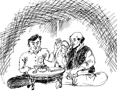 "어이! 여기 빼갈 한 도꾸리 더 가져 와 봐."