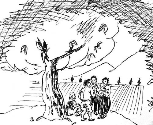 김춘섭은 쓸쓸하게 웃으며 마을 어귀로 들어섰다. 해룡네가 그릇을 들고 밖으로 나오는 모습이 보인다. 문득 해장 한잔 하고 싶은 생각이 들었다. 그러나 이내 생각을 지워버리고 둥구나무를 바라본다. 순배영감과 변쌍출하고 오 씨가 너럭바위에 앉아 있다.