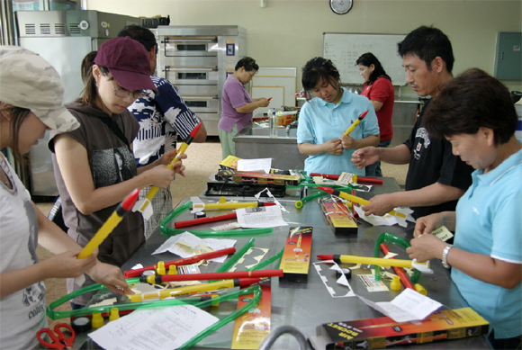 <사진설명=농촌관광사업을 하고 있는 농업인들이태안군 농업기술센터에서 열리고 있는 농촌관광전문인력 양성교육에 참여해 학생들을 위한 체험프로그램 개발교육을 받고 있다.>