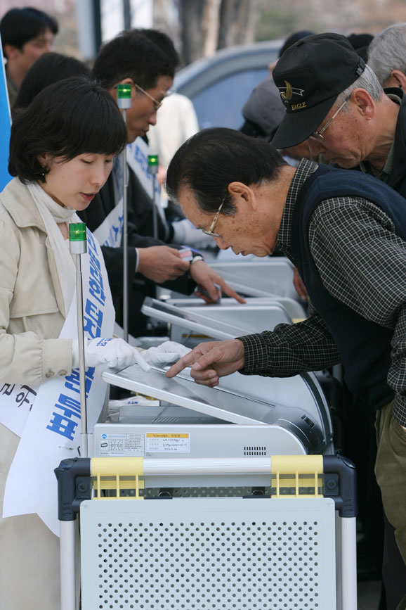 ▲충청북도선거관리위원회는 2008년 도입을 앞둔 터치스크린 전자 투표 체험행사를 19일 중앙공원에서 가졌다.ⓒ이준현기자 eamavan@ccilbo.co.kr 이준현 news@ccdailynews.com 다른기사 보기 저작권자 © 충청일보 무단전재 및 재배포 금지 당신만 안 본 뉴스 충청내륙고속화도로 12월 완전 개통... 충북 반나절 생활권 대전 도시정책, 설계부터 다시 짚어야 청주 산업지형 ‘대전환’…떠나는 분리막, 들어오는 HBM 세종지역 아파트 공급 가뭄 해소되나 대통령실·민주당, '행정수도 세종시 이전' 정책 본격 추진 나서 진천군수 선거 본격 점화···여야 6명 ‘무주공산’ 놓고 각축 “문 닫는 가게가 더 많다”…충북 자영업 폐업, 올해 벌써 지난해 추월 충청내륙고속화도로 12월 완전 개통... 충북 반나절 생활권 댓글삭제 삭제한 댓글은 다시 복구할 수 없습니다. 그래도 삭제하시겠습니까? 비밀번호 닫기 기사 댓글 0 댓글 접기 로그인 후 이용 가능합니다. 댓글 내용입력 비회원 로그인 이름 비밀번호 댓글 내용입력 댓글쓰기 계정을 선택하시면 로그인·계정인증을 통해 댓글을 남기실 수 있습니다. 회원 로그인 비회원 글쓰기 이름 비밀번호 자동등록방지 로그인 옵션 창닫기 주요기사 3분기 카드 해외사용 59억달러… 사상 최대 기록 충북 소비자심리지수 116.8… 2010년 이후 최고치 기록 충북도, 'AI 페스타 2025'로 AX 혁신거점 도약 청년 취업난에 직업계고 졸업생 절반은 대학 진학 청주서 수년 만에 출현한 바바리맨, 경찰 검거 기온 변동성 큰 이번 겨울, 짧고 간헐적 추위 찾아와