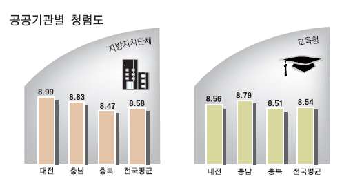 굳이 중앙정부로 갈 것도 없다. 충청지역에서도 얼마 전까지 △y군수의 관급공사 발주 댓가 300만원 수뢰 혐의 입건(2006년 10월) △l 전군수의 뇌물 수수로 인한 자격정지와 이에 따른 중도 사퇴(2006년 3월) △감사원 특별감사에서 3개 기초자치단체장의 부당한 인사개입으로 인한 동반 주의조치(2006년)라는 달갑지 않은 일이 벌어졌다.