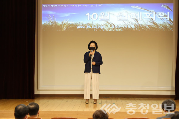 이번 월례회의는 코로나19로 인한 사회적 거리두기 지침에 따라 팀장급 직원(장학사ㆍ 6급)만 참석한 가운데 10월 1일자 전입직원, 승진직원의 청렴에 대한 견해를 나누고 소통하는 시간을 포함해 가졌다.