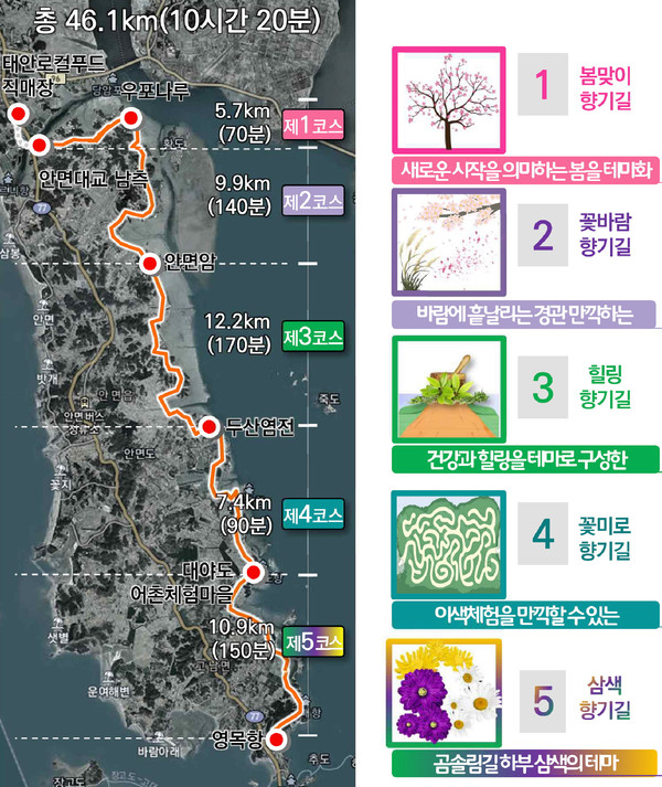 안면대교 남측~고남 영목항 약 46.1km, 5가지 색다른 테마코스 조성