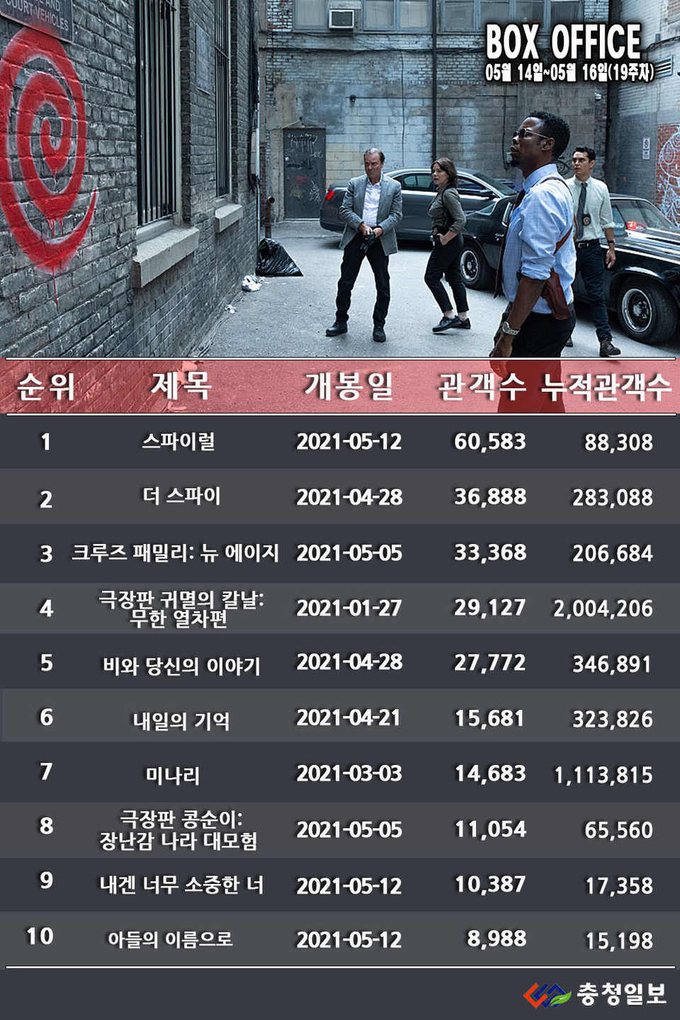 17일 영화진흥위원회 영화관입장권 통합전산망에 따르면 ‘스파이럴’은 지난 주말(14~16일) 기간 6만583명을 동원하며 누적관객 8만8308명을 기록했다.