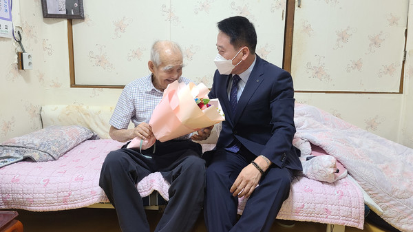 최주식 면장은 취임식에 앞서 갈산면 최고령자 이건엽(104세) 어르신을 방문해 문안인사를 드리며 면정의 첫걸음을 내디뎠다.