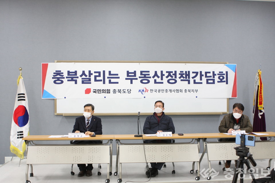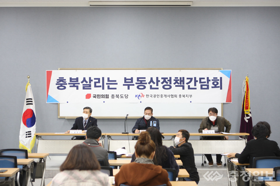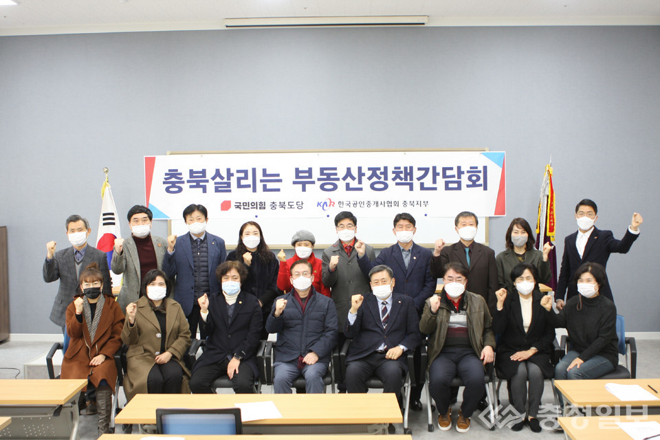 한국공인중개사협회 충북지부와 국민의힘 충북도당이 16일 오전 한국공인중개사협회 충북지부 대회의실에서 '충북살리는 부동산정책간담회'를 열었다.