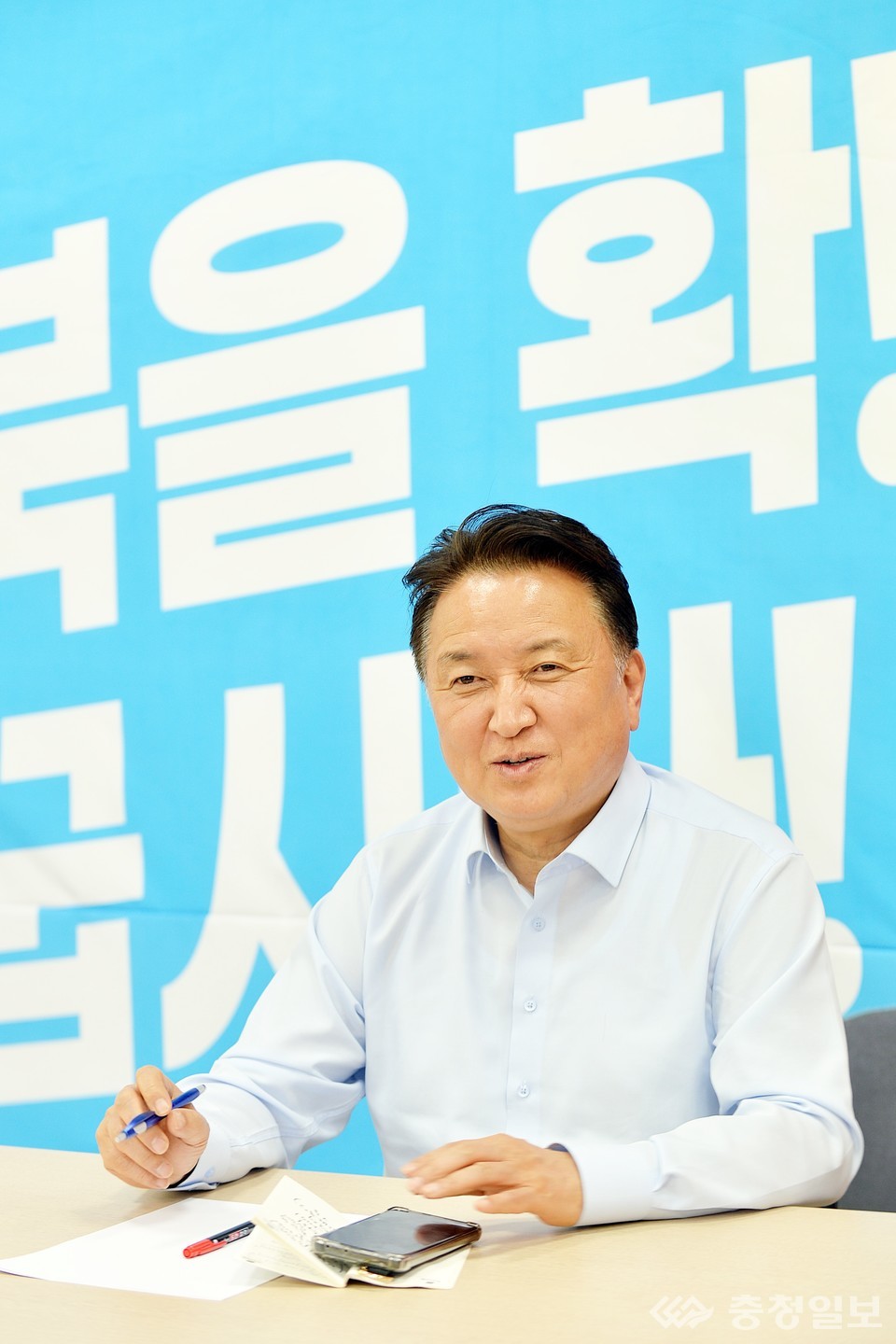 "충북이 대한민국의 변방으로 저평가되는 부분도 있는데 충북은 충분히 대한민국의 중심으로 설 수 있다. 그러기 위해 그동안 많은 노력을 했지만 특히 청주 오송과 오창을 중심으로 바이오메디칼, 바이오헬스 분야의 특성화된 산업이 집중돼야 할 필요가 있다. 거기에 카이스트 바이오메디칼캠퍼스를 유치하는 문제를 진행하고 있다. 대학교 캠퍼스 뿐 아니라 AI특성화고등학교를 만드는 문제를 생각하고 있다. 이런 과정에서 충북에 필요한 연구임상병원을 유치해야 한다는 생각도 갖고 있다. 충북의 교육을 창조적으로 강화시켜야하고, 교육도시로서의 브랜드를 살려내야 한다는 생각이다. 과학기술은 물론이고 수학 분야를 강화한 이런 전략을 통해 충북을 대한민국의 중심으로 만드는 생각을 갖고 있다.
