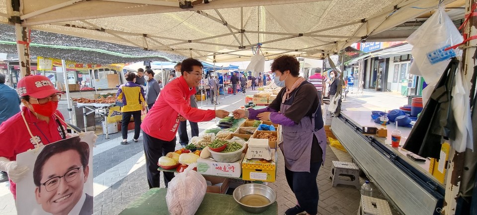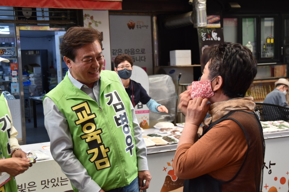 그는 이날 진천 오일장에서 시장을 찾은 주민들과 일일이 인사를 나누며 '미래를 열어가는 행복교육'을 완성할 수 있도록 지지를 호소했다.