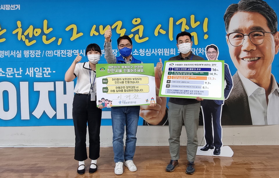 더불어민주당 이재관 천안시장 후보는 25일 충남아동보호전문기관 담당자들과 함께 아동이 바라는 정책을 충실히 이행할 것을 약속했다고 밝혔다.