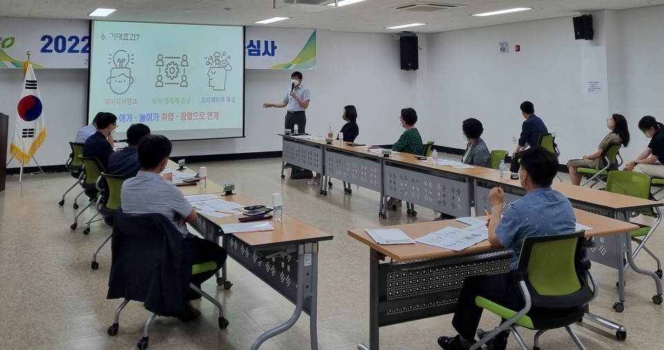 청주시는 지난 27일 도시재생지원센터 대회의실에서 시정도약을 위한 상반기 우수 제안 선정을 위해 제안심사위원 8명이 참석한 가운데 '2022년 상반기 제안 최종심사'를 개최했다.