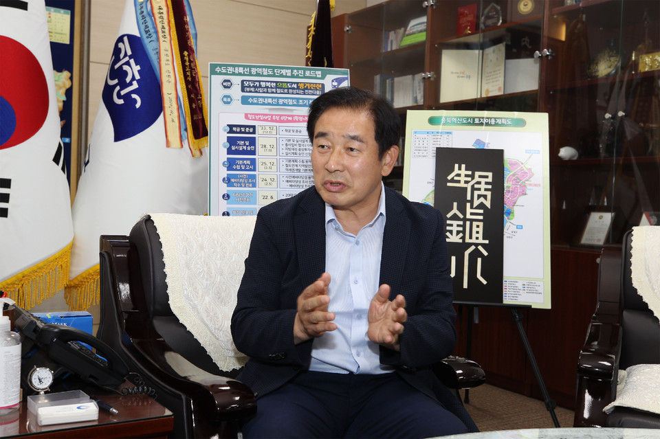 "지역의 산업수요가 증가하고 개발 잠재성이 증폭된 상황에서 효과적인 새로운 발전 수단을 강구하는 것은 지역미래에 있어 더없이 중요하다. 지역의 물리적 입지는 불변하지만 획기적 교통인프라의 확충은 지역발전의 입지성격을 획기적으로 변화시킬 수 있다. 따라서 우리 군이 민선 7기에 국가계획 반영에 성공한 '수도권내륙선 광역철도'의 조기착공 여부는 군의 도시의 외연을 확대하고 내적 성장을 이끌 수 있는 최대 관건이다. 지난 3월 지난 해 4차 국가철도망구축계획에 반영된 11개 비수도권 광역철도 중 선도사업에서 제외된 6개 노선 중에서 유일하게 사전타당성 조사용역이 발주돼 6월 용역 착수에 들어갔다. 내년 상반기 중 용역 결과가 나올 것으로 보이며, 하반기에 예비타당성조사 대상사업에 반영시킬 수 있도록 발빠르게 움직일 것이다. 나아가 빠른시일 내에 예비타당성조사 통과를 목표로 사업논리를 더욱 개발·강화하고 지자체간 공조를 강화해 나가겠다."