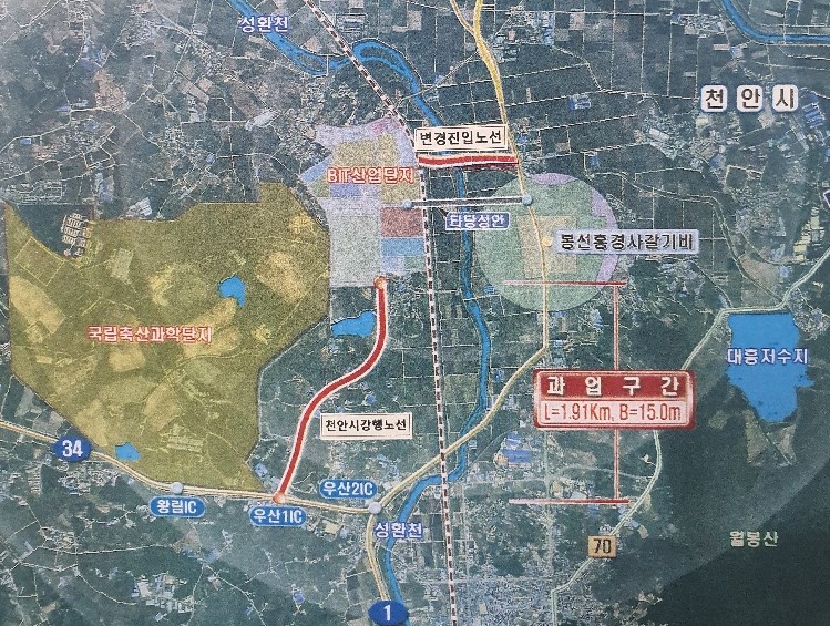 향후 성환종축장 개발시 BIT 진입도로와 1번 국도 접속구간이 직선으로 연결되고 이 도로가 입장면으로 연결돼 대한민국 축구종합센타까지 사통팔달 도로로 사용됨으로써 활용가치도 탁월하다고 분석했다.