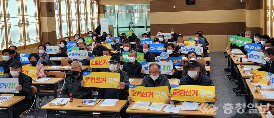 충북 진천군 문백농협(조합장 임종광)은 28일 농협 회의실에서 총회에 참석한 대의원 및 임직원 등 50여 명을 대상으로 공명선거실천 결의대회 및 전자금융사기 예방 교육을 실시했다.