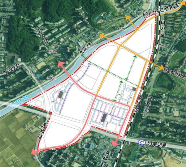 충남 천안시가 환지방식으로 추진하고 있는 용곡 눈들구역 도시개발사업(이하 눈들사업) 시행시 교통체증 최소화 방안과 소음 저감대책 마련 등이 병행돼야 한다는 지적이다.
