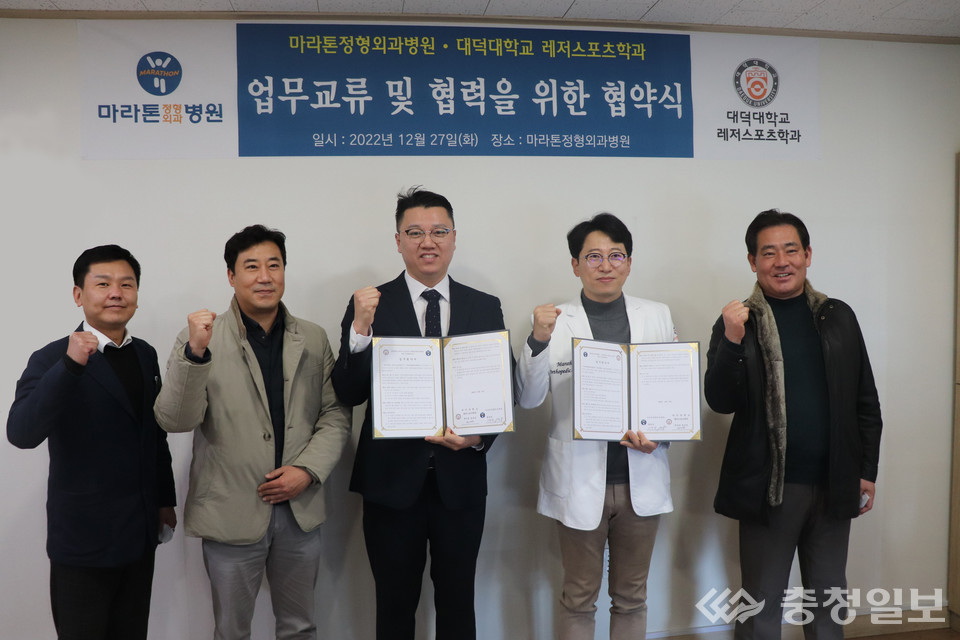 대덕대학교가 27일 새해부터 창단하는 야구부(레저스포츠학과) 선수들의 치료와 재활을 위해 마라톤정형외과와 업무협약을 체결했다.