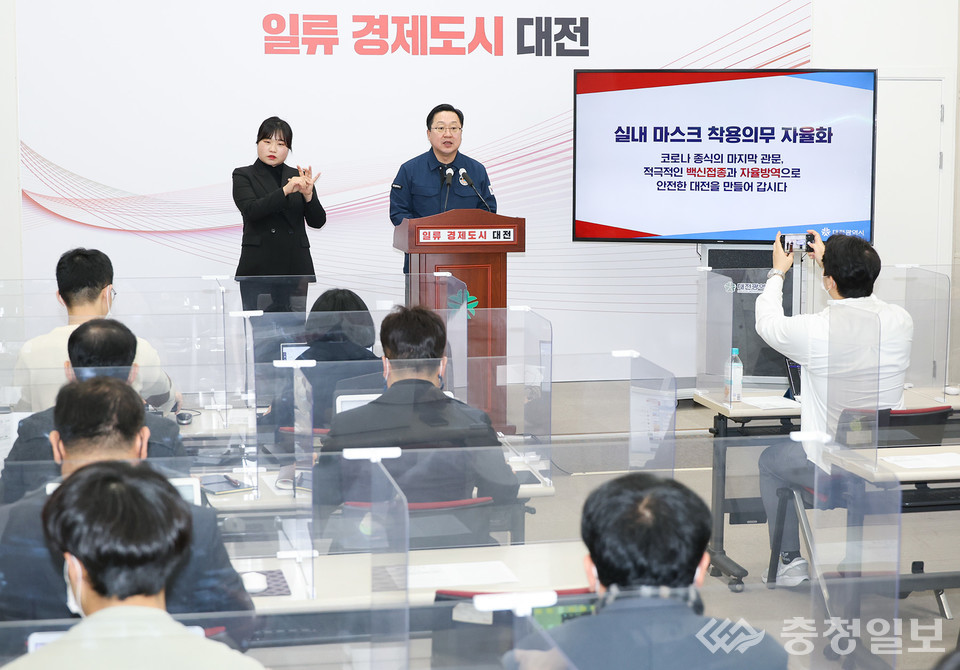 앞서 이장우 시장이 지난 2022년 10월 해외사례와 장기간의 국민 방역 정서를 고려해 실내마스크 착용의무 자율화를 제기한 바 있다.