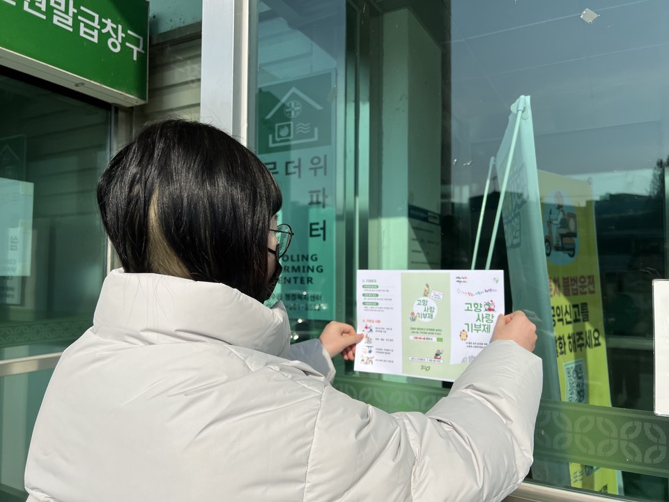 충북 청주시 청원구 내수읍행정복지센터(읍장 이경은)가 6일 고향사랑기부제 홍보에 나섰다. 센터 내 홍보 포스터 부착과 함께 민원인 대상 고향사랑기부제 관심을 이끌어 낼 수 있도록 홍보하고 있다. 이경은 읍장은 "고향 발전과 지역경제 살리는 데에 보탬이 되는 고향사랑기부제에 많은 관심을 가져주기를 바란다"고 말했다.