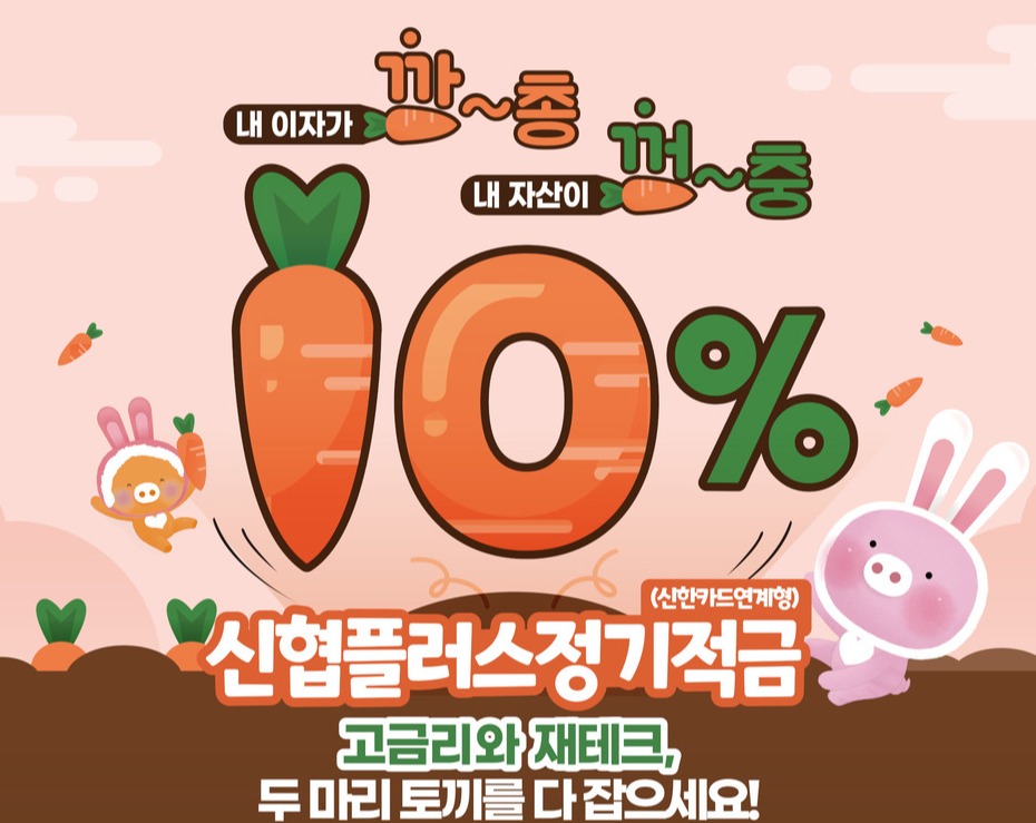 신협중앙회는 최저 연 4.5%에서 최고 10.0%의 금리를 제공하는 '플러스정기적금' 상품을 신한카드와 연계해 출시했다고 8일 밝혔다.