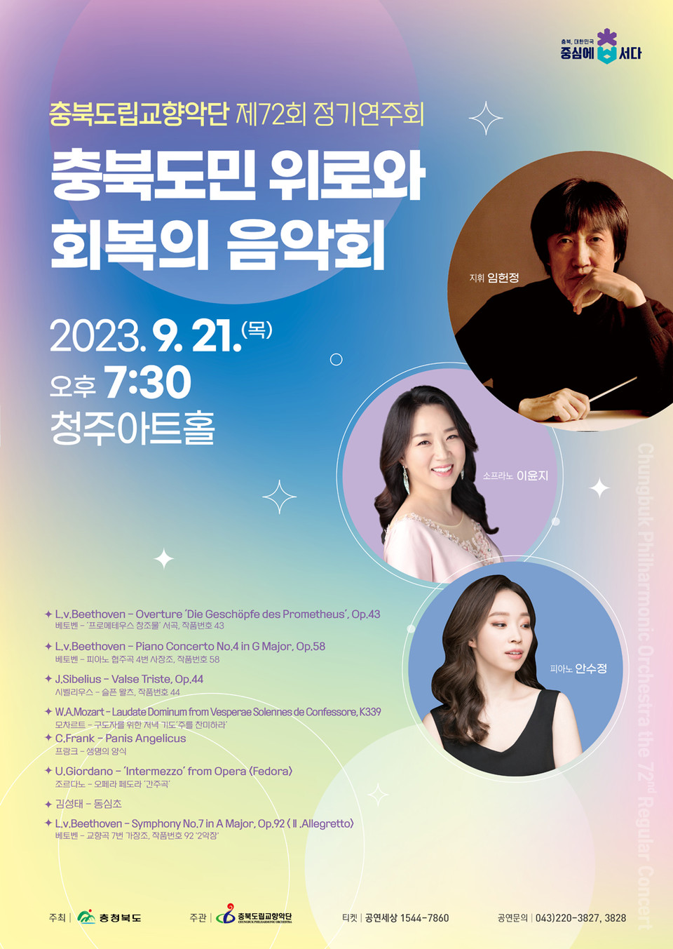 충북도립교향악단의 72회 정기 연주회가 21일 오후 7시 30분 청주아트홀에서 열린다.