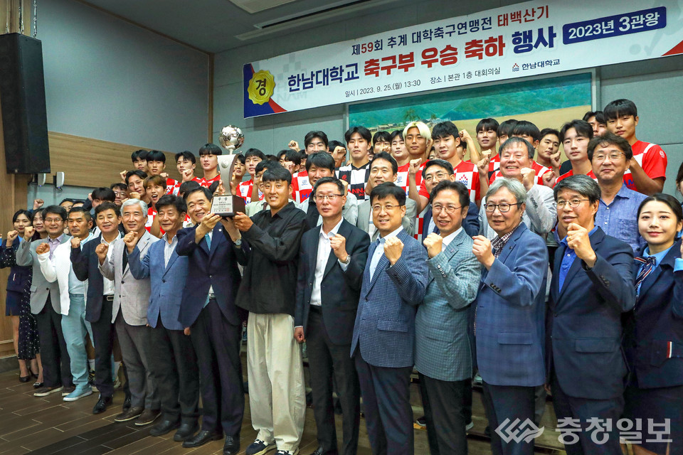 한남대가 59회 추계대학축구연맹전 태백산기 우승 축하행사를 개최하고 우승의 기쁨을 나눴다.