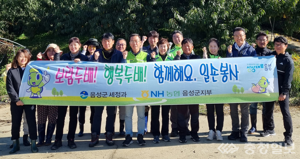 또 음성군청 세정과와 NH농협 음성군지부(지부장 고윤종) 직원들도 이날 음성군 음성읍 용산리 소재 사과재배 과수농가에서 사과나무 지주대 정리 등 가을철 농촌일손 돕기에 동참했다.