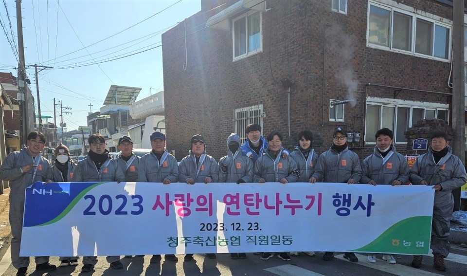 청주축산농협 임직원들은 지난 23일 300만원의 기금을 마련해 청주시 청원구 우암동 소재 8가구에 연탄 2400장과 쌀과 달걀 등을 직접 전달했다.