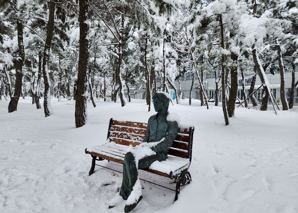 벤치에 홀로 앉아 흩날린 설편(雪片)을 뒤적이고 있었는데요