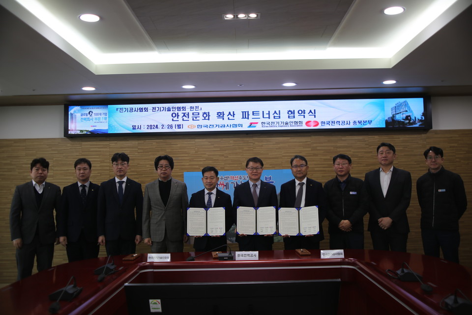 한전 충북본부는 26일 전기공사협회 충북도회 및 전기기술인협회 충북도회와 ‘안전문화 확산 파트너십 업무 협약식’을 맺었다.