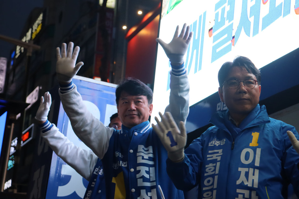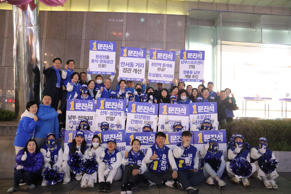 문 후보 등은 "단 한 번도 국민을 존중한 적 없는 윤석열 정부를 심판해야 한다"며 "천안 시민을 믿고 마지막까지 사력을 다해 달리겠다 "고 지지를 호소했다.