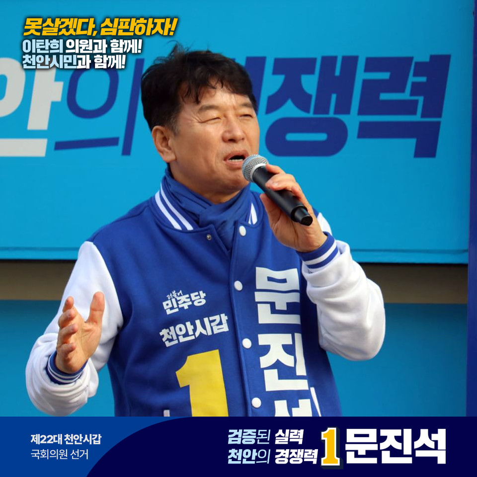 문 후보 "5분만 투자하면 좋은 정치를 만들 수 있어, 더 큰 힘으로 천안 발전 확실히 챙길 것"