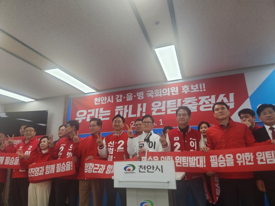 신 전 행정관은 "천안에서 국민의힘 당으로 출마했던 모든 후보가 원팀을 이룬 것은 처음인 것 같다"며 "이번 총선은 대한민국의 미래를 결정하는 선거이고 기울어진 국회권력을 바로잡는 선거이다"고 했다.