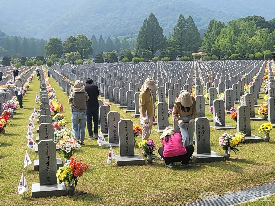 국립한밭대학교가 호국보훈의 달과 69회 현충일을 앞두고, 재학생과 교직원 약 40명이 국립대전현충원을 방문해 순국선열과 호국영령의 숭고한 희생정신을 기리며 지역사회 유산보호 봉사활동을 펼쳤다.