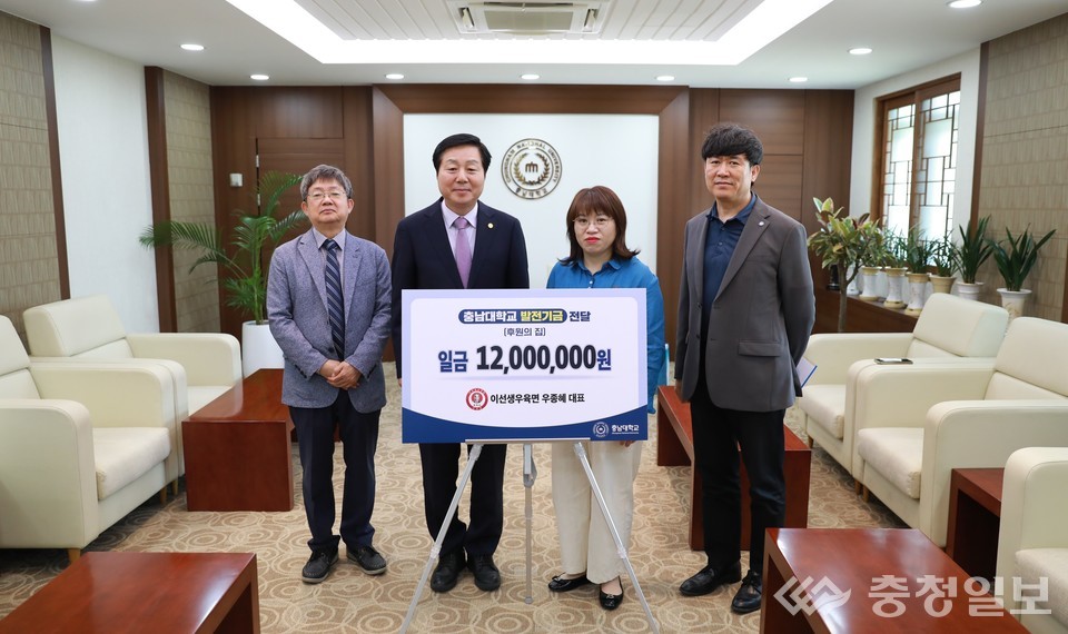 우 대표는 28일 오후 2시, 충남대학교 김정겸 총장을 방문해 발전기금 1200만원을 전달했다.