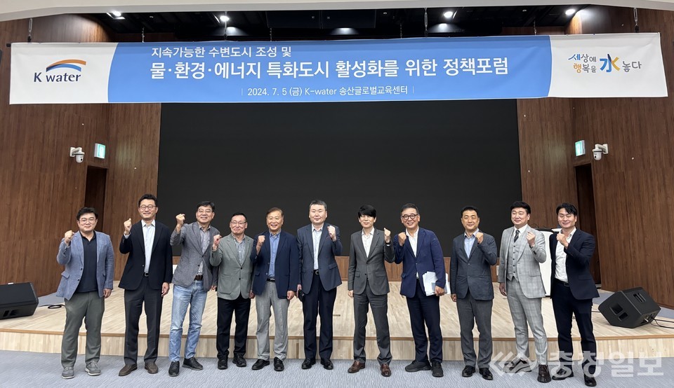 한국수자원공사(K-water, 사장 윤석대)가 지난 5일 경기도 화성시 송산글로벌교육센터에서 기후위기와 사회·환경문제에 대응한 새로운 도시 패러다임을 논의하기 위해 '수변도시 정책 포럼'을 개최했다. 안정호 그린인프라부문장(사진 가운데)은 "이번 포럼을 통해 다양한 분야의 전문가들이 함께 모여 기후위기와 사회·환경 문제에 대한 해결책을 논의하게 되어 매우 뜻깊다"며 "공사는 산·학·연·관의 협력 강화를 통해 물·환경·에너지 분야에서 선도적인 역할을 수행하고, 지속 가능한 도시 개발을 위한 핵심 기술을 발전시키는 데 전념할 것"이라고 밝혔다. 이어 "기후변화에 대응하는 탄소중립 도시 계획을 적극 추진하여 미래의 지속 가능한 성장을 이끌어 나아가겠다"고 강조했다. /대전=이한영기자